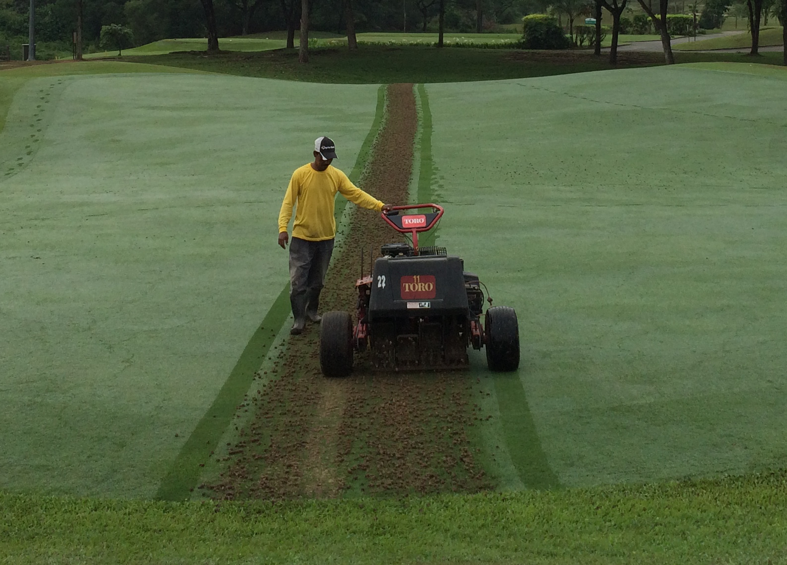 Golfer (dan pengurusan), selalu akan tanya “kenapa nak hollow-tine? Kan green elok?” Kita lakukan kerja pengudaraan tanah ikut jadual. Malah, kalau kebetulan waktu itu rumput sedang sakit tenat, kita akan modify kerja kita (tine yang kecil, atau Air2G2, ubati dulu). Selalunya tak dapat tangguh. Kalau dapat: bagus lah.
