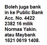 Saya menyumbang ilmu secara ikhlas melalui laman web ini. Tetapi pengendalian laman web ini perlukan wang. Setiap tahun USD99 (lebihkurang RM400). Sedikit sumbangan anda amat membantu. Anda mendapat manafaat dari laman web ini? Sumbangan bermula dari $10. Jangan lupa ‘Like’ artikel ini; ‘Follow’ laman web ini dan klik mana mana iklan di page ini. This website is maintained and managed with my own money. I’ve done my best to not allow advertisement on this site thus far so that I can be independent. I’m going to start to ask for donations and see if I can get enough to sustain it that way. Donations start from $10.